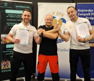 Trenerzy Pogoni Mogilno Daniel Aleksandrowicz i Jakub Łaganowski wzięli udział w organizowanym przez Kujawsko-Pomorski Związek Piłki Nożnej kursie pierwszej pomocy przedmedycznej.